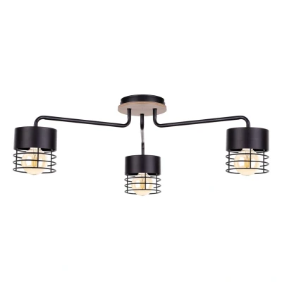 Casa Multi Arm Semi Flush Ceiling Light Black, Wood, 70cm, 3x E27
