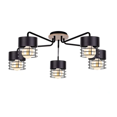 Casa Multi Arm Semi Flush Ceiling Light Black, Wood, 70cm, 5x E27