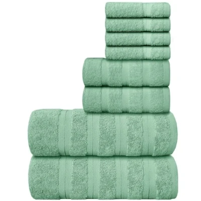 CASABELLA 8 Pc Towel Set Seafoam Luxury Quality100% Combed Cotton 650 GSM Towels Conatains 4 Wash cloths, 2 Hand & Bath Super Absorbant Bale Sets