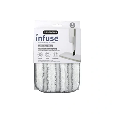 For use with the Casabella Infuse Spray Mop. Machine washable, can be used at least 100 times. Removes dirt and grime from all types of hard flooring, vinyl, laminate, stone, ceramic, tile, hardwood, linoleum and more. Works with both the Casabella Infuse Hardwood Floor Spray Mop and the Casabella Infuse Multi-surface Floor Spray Mop. Includes (1) Microfiber Mop Pad Refill for Casabella Infuse Spray Mop, Weight: 0.18298367746 pounds, Manufacturer: Bradshaw International