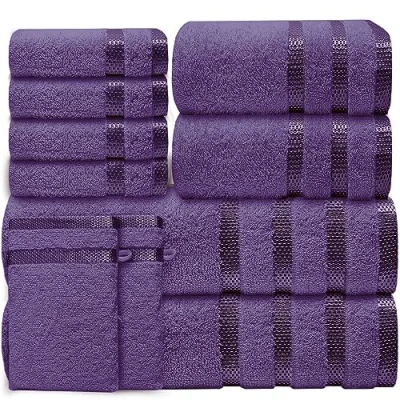 Casabella Luxury Bath Towel Set 10 Piece Towels for Bathroom 100% Cotton 2 Towels, Hand 4 Face cloth & Body Wash Gloves Highly Absorbent Hotel Quality Bale Purple