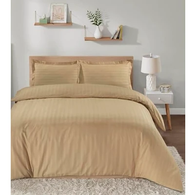 Casabella Beige Bedding Super King Duvet Cover 260X220 cm crafted from high-quality Poly Cotton Microfiber fabric, the duvet cover offers a soft & smooth feel, ensuring a comfortable & restful sleep experience. Casabella Duvet Cover Set features a refined satin stripe pattern, adding a touch of sophistication and luxury to your bedroom decor. Superking Duvet sets includes a duvet cover and matching pillowcases, creating a cohesive and stylish look for your bedding ensemble. King Size Duvet Cover is easy to care for and maintain. The Superking Bedding set with Satin Stripe material is Breathable and Hypoallergenic, making it suitable for those with allergies or sensitive skin. Available in variety of colors. Superking Bedding Set with Satin Stripe is made with durability in mind and designed to withstand regular use and maintain its quality over time