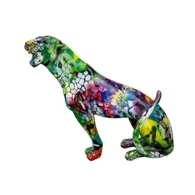 Casablanca Decorative Animal Figure Cheetah Wild Cat Made of Resin in Street Art Design Living Room Colour: Multicoloured, Height 28 cm