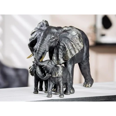Box contents: 1 x elephant trio figurine in black with accents in gold. With felt pads to protect against scratches. Dimensions: width 39.5 cm, height 26.5 cm, depth 18.5 cm Made from resin Care instructions: clean with a clean, soft cloth - do not use abrasive or acidic detergents Suitable for many interior styles and mix of styles, such as vintage, Scandinavian, boho, country house style, industrial, cozy, shabby chic, colonial, retro and much more Modern yet classic - great decoration on the sideboard, side table, in the showcase, on the windowsill, desk or living room table. Nice gift for your wife, husband, grandma and grandpa, best friend, best friend on various occasions such as birthday, wedding, anniversary, Christmas, Mother's Day or Father's Day.