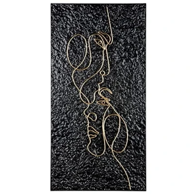 Casablanca Decorative Relief Wall Decoration Large Picture XL with Face Features Handmade Metal Colour: Gold on Black Background 41 x 81 cm