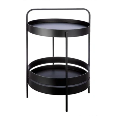 Casablanca Level Side Table, Metal, Round, Black, Height 62 cm x Diameter 42