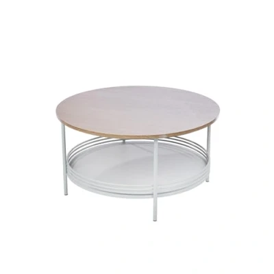 Stylish metal side table in natural and white finish, ideal for modern living spaces. Round shape with a generous diameter of 75 cm, perfect for living room or as a bedside table. Compact height of 40 cm, fits effortlessly into small spaces and offers versatile uses. Durable metal construction ensures durability and stability, ideal for everyday use. Simple design that integrates seamlessly into different interior styles.