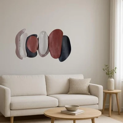 Elegant metal wall relief in anthracite, brown and cream with gold accents, ideal for stylish living spaces. Textured surface gives the relief a special depth and visual appeal. Easy to install thanks to the integrated hanger, perfect for quick and easy decoration. Generous dimensions of 44 cm height and 78 cm width make it the focal point of any room. Versatile use in living room, office or hallway to add a classy touch to any room.