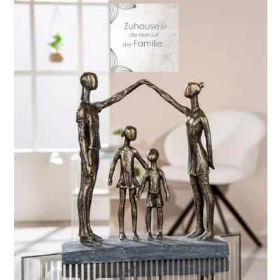 Elegant bronze resin sculpture with antique finish, ideal as a decorative highlight in any room. Symbolises protection and cohesion: the shape of a family in protective hands conveys security. Includes a slogan card, perfect as a gift for special occasions or for personal inspiration. Compact dimensions (30 x 26 x 8.5 cm) with sturdy base (8.5 x 9 cm) for secure standing on shelves or tables. Subtle black accents underline the elegant design and match different interior styles.