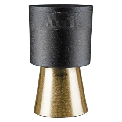 Stylish aluminium planter in elegant black with gold accents and crackled finish, ideal for modern living spaces. Cylindrical shape with 29 cm height and 17.5 cm diameter, perfect for medium sized plants and decorative arrangements. Waterproof and suitable for indoor use only, protects surfaces from moisture and ensures long-lasting use. Internal dimensions: diameter 16.5 cm, height 15.5 cm, including felt pads to protect delicate floors from scratches. Combine functionality and design with this unique planter that will add a touch of elegance to any room.