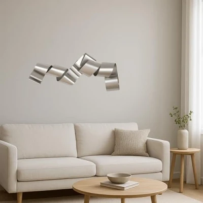 Elegant champagne metal wall object with matte finish, ideal for modern living spaces. Integrated hanging hardware for easy and secure mounting on any wall. COMPACT DIMENSIONS 28cm high, 75cm wide, 13.5cm deep, perfect for living room or office. Timeless design that blends seamlessly into different interior styles. High quality workmanship ensures durability and stylish accents in your home.