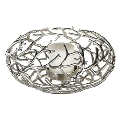 Candle holder "Twigs" diameter 42 cm, height 20 cm Nickel-plated, for 1 pillar candle Silver Aluminium Nice gift for your wife, husband, grandma and grandpa, best friend, best friend on various occasions such as birthday, wedding, anniversary, Christmas, Mother's Day or Father's Day.