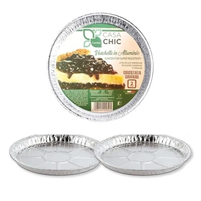 CasaChic Aluminium Large Tart Container, Pack of 2 Round Disposable Cake and Pizza Pan (Diameter 25 cm)