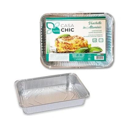 CasaChic Aluminium Rectangular Container Without Lid 12 Portions, 1 Piece Maxi Baking Pan for Food, and Buffet (37 x 32 5 cm)