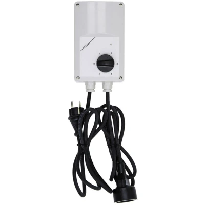 General description The 5 Step Transformer Speed Control ETW Z 1-0 is designed to provide precise control over electrical devices, allowing users to adjust the voltage output across multiple steps for optimal performance. Technical specifications Operating voltage: 230 V ~ 50 Hz Housing colour: light grey RAL 7035 Housing material: plastic Max. load: 1.0 A Steps: 0 - 80 - 110 - 140 - 170/190 - 230 V Max. ambient temperature: 35°C Cable type: H07RN-F 3G1.5 mm² Height: 160 mm Width: 84 mm Depth: 88 mm Weight: 1 kg
