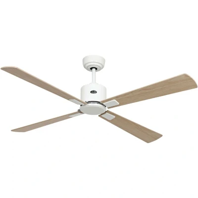 General description The DC Ceiling Fan ECO NEO III 132 WH Maple / Beech combines functionality and style, featuring a reversible blade design that allows you to switch between a maple and beech finish. This ceiling fan is designed for versatile installation and efficient airflow, making it an excellent addition to any room. Technical specifications Voltage: 100-240 V ~ 50/60 Hz Diameter: 132 cm / 52" Housing colour: white Blade colour: maple / beech (reversible) Motor wattage: 2.3 / 3.5 / 6.3 / 11.2 / 18.3 / 27 W Revolutions per minute: 30 / 65 / 90 / 123 / 155 / 185 Max. airflow rate: 159.6 m³/min / 5636 cfm Max. sound pressure level Lp-3m: 31.3 dB(A) Max. sound power level: 51.8 dB(A) Ceiling to blades: 36 cm / 14.2" (27 cm / 10.6" with short drop rod) Overall drop: 38 cm / 14.9" (29 cm / 11.4" with short drop rod) Diameter canopy: 13 cm / 5.1" Diameter motor housing: 16.5 cm / 6.5" Max. ceiling slope: 23° Compatibility and accessories Can be mounted with 2, 3, or 4 blades (4 blades