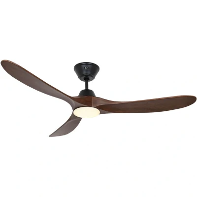 General description The DC Ceiling Fan Eco Genuino in Black/Walnut combines modern design with efficient functionality. With a diameter of 152 cm (60 inches), this ceiling fan is perfect for larger spaces, providing optimal airflow and lighting. Technical specifications Voltage: 220-240 V ~ 50 Hz Diameter: 152 cm / 60" Housing colour: matt black Blade colour: walnut Integral lighting: 17 W LED (included) Motor wattage: 3.3 / 3.6 / 4.8 / 6.6 / 9.4 / 16.5 W Revolutions per minute: 50 / 57 / 77 / 96 / 114 / 144 Max. airflow rate: 152.9 m³/min / 5399 cfm Max. sound pressure level Lp-3m: 20.1 dB(A) Max. sound power level: 40.6 dB(A) Ceiling to blades: 34 cm / 13.4" Ceiling to bottom: 42 cm / 16.5" Diameter canopy: 18 cm / 7.1" Max. ceiling slope: 18° Forward and reverse function (summer and winter mode) Usage Includes remote control with 6 fan speeds / off Light on / off / dimming Running direction control Other information Lighting details: LED module Wattage: 17 W Lumens: 1800 lm Colour