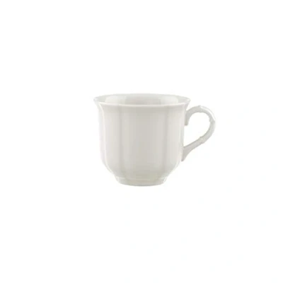 Elegant coffee cup for stylish Coffee enjoyment in everyday life and on special occasions Filigree relief, forms a Duo with saucer, handle is easy to hold, fits under coffee machines that allow height of 6.7 cm Also suitable for catering thanks to its handy shape, complements the manoir tableware perfectly Dishwasher and microwave safe, high quality: premium Porcelain made in Germany Contents: 1x Villeroy & Boch manoir coffee cup (200 ml), material: Premium Porcelain, colour: white