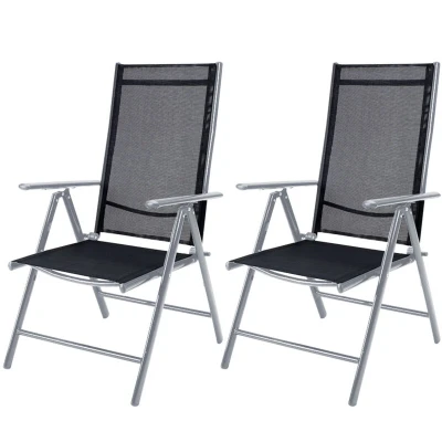 General description The CASARIA® Bern High Backed Folding Aluminium Garden Chairs are an exclusive and stylish addition to your outdoor space. These foldable chairs feature a high-back design and a 7-way adjustable reclining backrest, providing excellent seating comfort. The chairs are perfect for enjoying the nice weather, whether on your patio or in your garden. Technical specifications Dimensions (DxWxH): 65 x 60 x 111 cm (25.6 x 23.6 x 43.7 inches) Frame material: Powder-coated aluminium with rustproof stainless steel screws Cover fabric material: 70% polychloride, 30% polyester Load capacity: 120 kg Usage Ideal for both indoor and outdoor use Easy to set up as no assembly is required Weatherproof and easy-care seats that are washable Other information Durable and hard-wearing materials Foldable design for space-saving storage Safely rounded edges for added safety