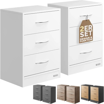 CASARIA® 2x Eloise 3 Drawer Bedside Table Chest Of Drawers Cable Routing Hole Wall Mounting Option Bedroom Nightstand 54x39x28cm White Finish