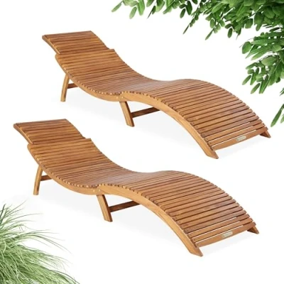 CASARIA® 2x ERGO Foldable Wooden Sun Lounger Ergonomic Design Garden Deck Chair FSC® certified Acacia Wood Portable Patio Furniture Sunbed w/Adjustable Headrest 160kg Capacity