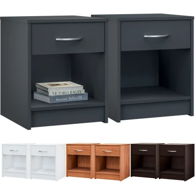CASARIA® 2x Hamburg Bedside Table Modern Nightstand with Drawer and Open Shelf 50cm Height Storage 50x40x35cm Chrome Handle Bedroom Cabinet Anthracite