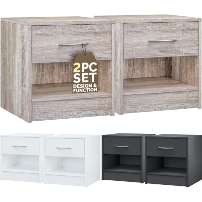 CASARIA® 2x Kiel Bedside Tables with Drawer & Shelf 41cm Height Nightstand Storage 41x39x28cm Aluminium Look Handle Small Side Unit Bedroom Cabinet Chest Furniture Oak