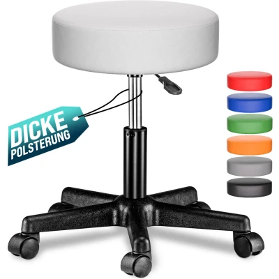CASARIA® 35cm White Rolling Stool with Wheels Height Adjustable 360 Rotatable Padded Swivel Roll Chair Double Castors Comfortable Upholstered Seating Office Workshop Salon