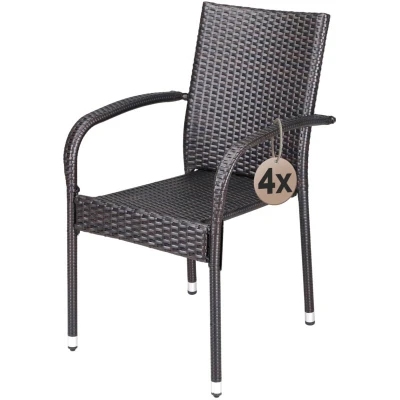 CASARIA® 4 Piece Polyrattan Stacking Garden Chair Set Stackable Weatherproof Outdoor Chairs with Armrest 160kg Capacity Camping Patio Balcony Deck Seating Brown