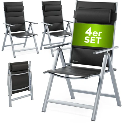 CASARIA® 4x Bern Premium High Back Folding Aluminium Garden Chairs 8 Point Reclining Padded Armchair Foldable Lightweight Outdoor Patio Balcony Dining Furniture Silver