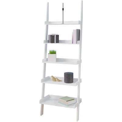 CASARIA® 5 Tier Tall Ladder Shelves 180x64cm 10kg Per Shelf Stable MDF Wood Shelving Unit Suitable For Decorative Flowers Books Ornaments Bathroom Living Room Bookshelf White