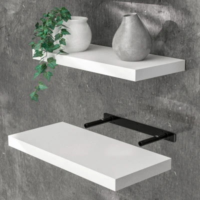 CASARIA® 50cmx23cm Matt White Floating Shelf Including Bracket Wall Shelving Living Room Kitchen Bedroom Office 38mm Thick Hidden Fixing 15kg Capacity MDF