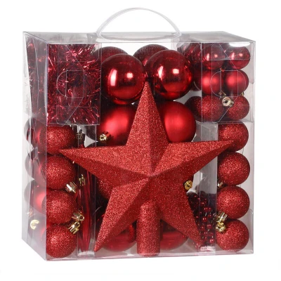 CASARIA® 77Pcs Christmas Tree Bauble Set Baubles Hearts Stars Cones Star Matte Shiny & Glittery Hanging Balls Decorations Pack Classic Red