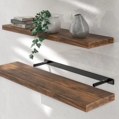 CASARIA® 90cmx23cm Dark Oak Floating Shelf Including Bracket Wall Shelving Living Room Kitchen Bedroom Office 38mm Thick Hidden Fixing 15kg Capacity MDF