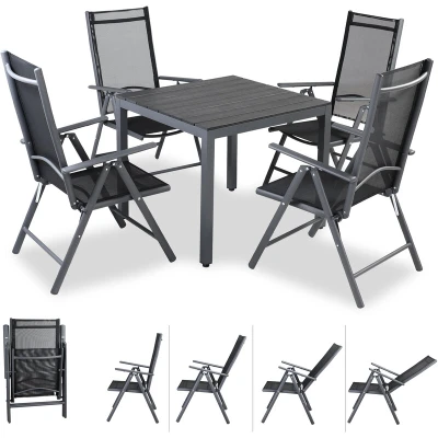CASARIA® Aluminium Dining Table & Chairs Set 4 Seater with High Back Folding Adjustable Recliners 80x80cm WPC Square Top Garden Furniture Dark Grey Anthracite