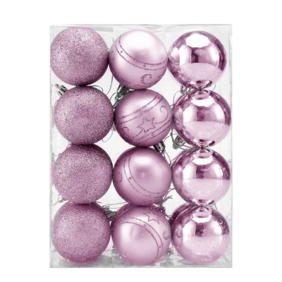 CASARIA® Christmas Tree Baubles Set 6cm Diameter Matt, Shiny & Glittery Mix Decoration Hanging Balls Ornaments Xmas Decor 48 Pieces Pink