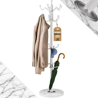 CASARIA® Elegant Curved Coat Rack Hat Stand with Marble Base and 14x Rotatable Hangers Sturdy & Stylish Clothes for Hallways Offices Furniture White 175cm Tall