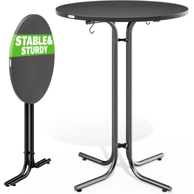 CASARIA® Foldable Round Bar Table 70 x 110cm Sturdy Garden High with Wooden Top and Powder Coated Metal Frame Bistro & Party Grey
