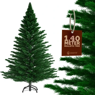 CASARIA® Green Artificial Realistic Christmas Tree With Luxury Noble Fir Leaves 4.7ft Xmas Stand Look Fire Resistant Quick & Easy Assembly 140cm /
