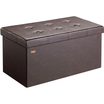 CASARIA® Large Faux Leather Foldable Ottoman Chest Bench with Padded Lid 80x40x40cm 100 Litres Decorative Shoe Storage Box Lounge Bedroom Hallway Furniture Brown