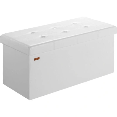 CASARIA® Large Faux Leather Foldable Ottoman Chest Bench with Padded Lid 80x40x40cm 100 Litres Decorative Shoe Storage Box Lounge Bedroom Hallway Furniture White