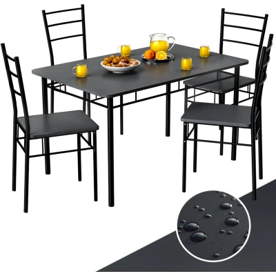 CASARIA® Leo 5 Piece Dining Furniture Set Table with 4 Chairs MDF Wood Metal 110x68cm Industrial Modern Design Easy Clean Room Kitchen Anthracite Grey