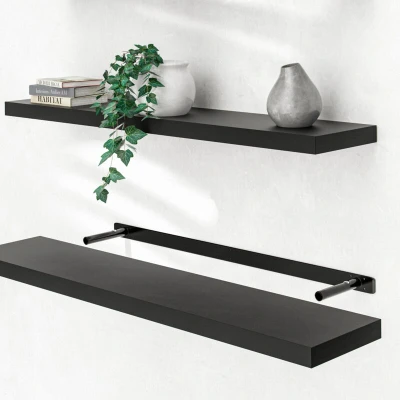 CASARIA® Matt Black Floating Shelf Including Bracket Wall Shelving Living Room Kitchen Bedroom Office 38mm Thick Hidden Fixing 15kg Capacity MDF 110 x 23cm