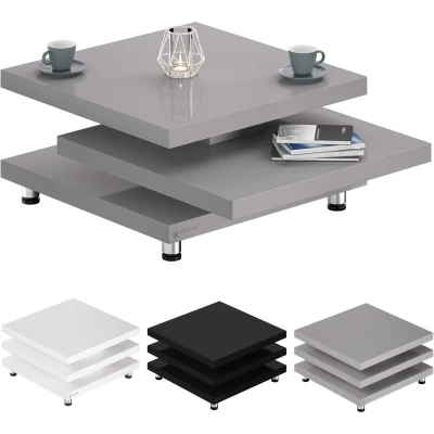 CASARIA® New York Coffee Table 72x72cm High Gloss Grey Modern 360" Rotating Top Design Cube Living Room Sofa Adjustable Levelling Feet MDF