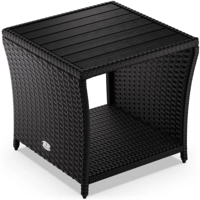 CASARIA® Polyrattan Garden Side Table WPC Top 45x45x40cm 80kg Load Capacity Weatherproof Outdoor Patio Deck Balcony Furniture Coffee Adjustable Levelling Feet Black