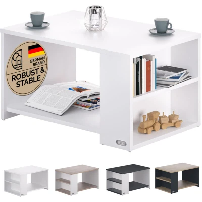 CASARIA® Santa Cruz Coffee Table With Shelf 2 Compartments Storage Space 90x59x47.5cm Scratch Resistant Surface 50kg Load Capacity Living Room Office Sofa Side White