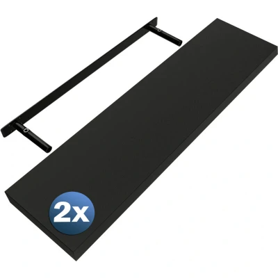CASARIA® Set of 2 90cmx23cm Matt Black Floating Shelf Including Bracket Wall Shelving Living Room Kitchen Bedroom Office 38mm Thick Hidden Fixing 15kg Capacity MDF