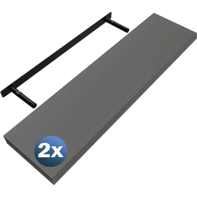 CASARIA® Set of 2 90cmx23cm Matt Grey Floating Shelf Including Bracket Wall Shelving Living Room Kitchen Bedroom Office 38mm Thick Hidden Fixing 15kg Capacity MDF