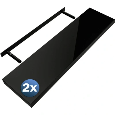 CASARIA Set of 2 Floating Shelves w/Brackets 50 110cm 15kg Capacity Hidden Wall Fixing Kitchen Office Lounge Hallway Modern Decorative High Gloss Hanging Shelving Black 90cm
