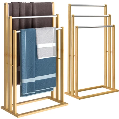 CASARIA® Set of 2 Three Tier Freestanding Wooden Towel Holders 3 Bamboo Stand Rack for Toilet & Bathroom with Rails 46 x 24 84cm